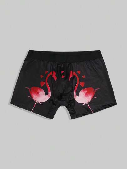 男士火烈鳥圖案平角內褲 - 黑色 - 查看 1