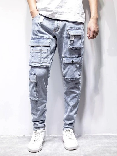 Manfinity 男士翻蓋口袋牛仔褲 - 淺色水洗藍 - 查看 1