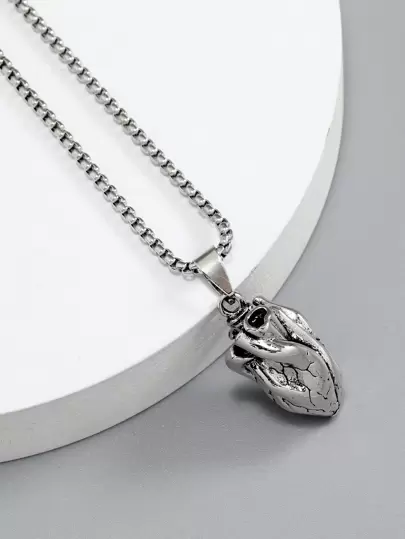 男士心臟吊墜項鍊 - 復古銀色 - 查看 1