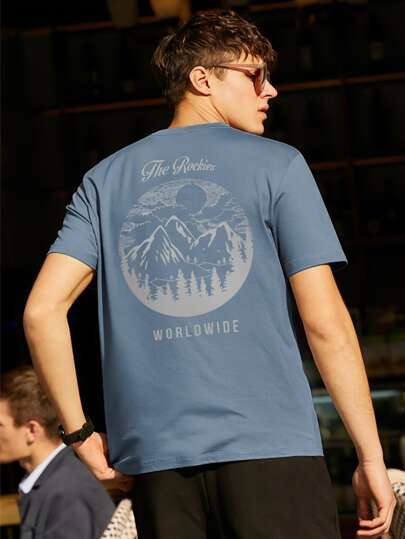 男士字母和風景印花T恤 - 霧霾藍 - 查看 1