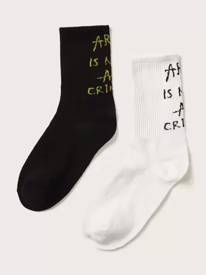 男士字母短襪2雙 - 黑與白 - 查看 1