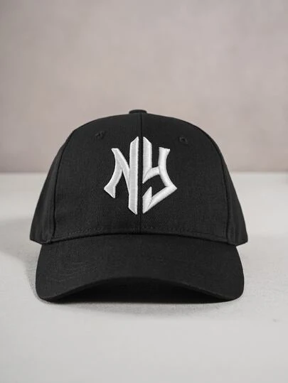 男士字母刺繡棒球帽,黑色帽子,街頭休閒風格