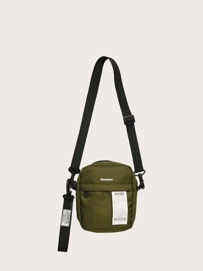 男士字母圖案斜背包 - 綠色 - 查看 1