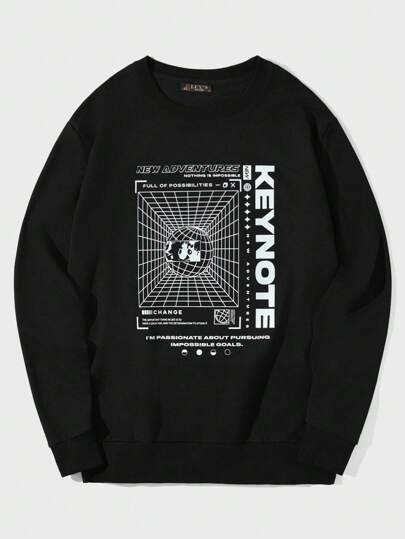 RueChic 男士字母圖案運動衫 - 黑色 - 查看 1
