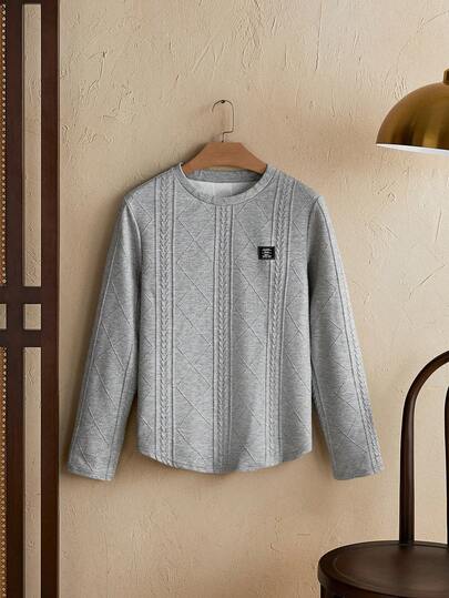 男士字母拼接细节T恤,秋季款 - 灰色 - 查看 1