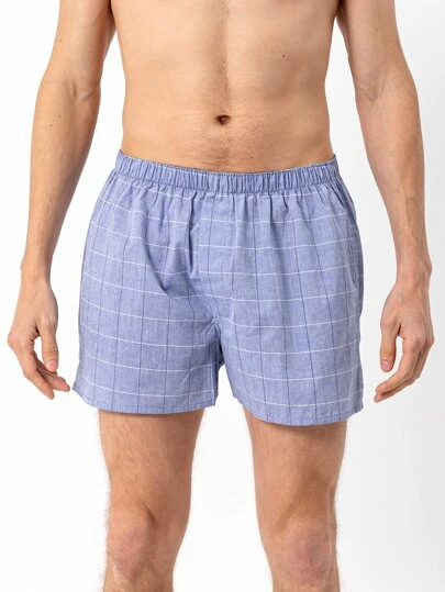 男士格紋印花平角內褲 - 藍色 - 查看 1