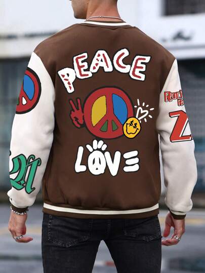 Manfinity Homme 男士大码字母和卡通圖案雙色棒球服無連帽衫 - 彩色 - 查看 1