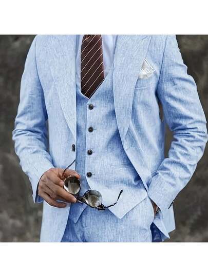 Men'S 2pcs Cotton Linen Suit Summer Wedding Formal Party Events Tuxedo Suit Elegant Casual Working Business Suit 34S 36S 38S 40R 42R 44R 12.15gal