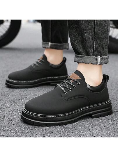 男士復古工作靴,沙漠英倫風格低筒正裝鞋 - 黑色 - 查看 1