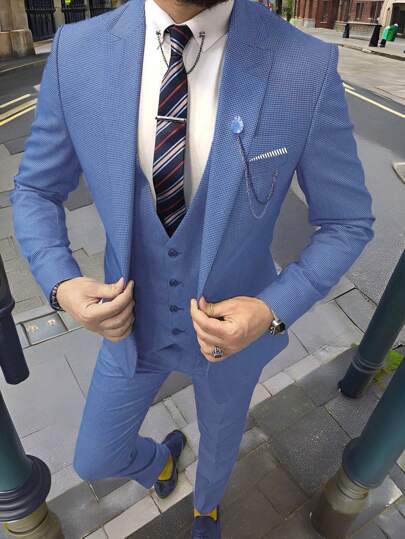 Manfinity Mode 男士單釦西裝外套和西裝褲 - 藍色 - 查看 1