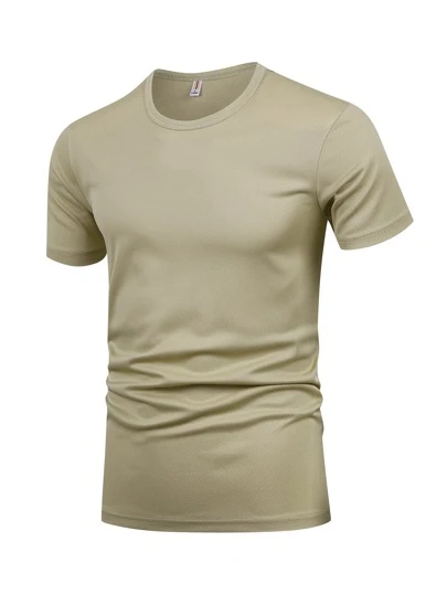 男士素色圓領T恤 - 卡其色 - 查看 1