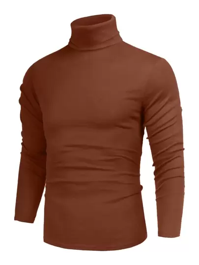 男士素色高領T恤 - 鏽棕色 - 查看 1
