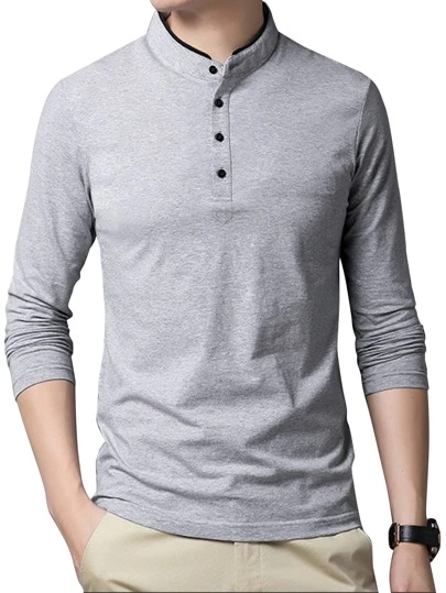 男士立领长袖Polo衫 - 淺灰色 - 查看 5