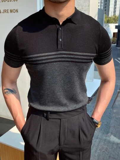 男士條紋圖案針織上衣 - 彩色 - 查看 1