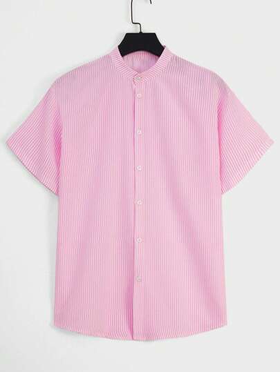 SHEIN Cottnline 男士條紋印花襯衫 - 粉色 - 查看 1