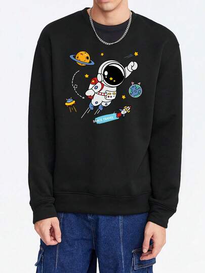 Manfinity Hypemode 寬鬆版男士太空人印花圓領汗衫 - 黑色 - 查看 1