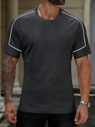 男士透气速干运动T恤,轻便健身训练休闲服 - 深灰色 - 查看 5