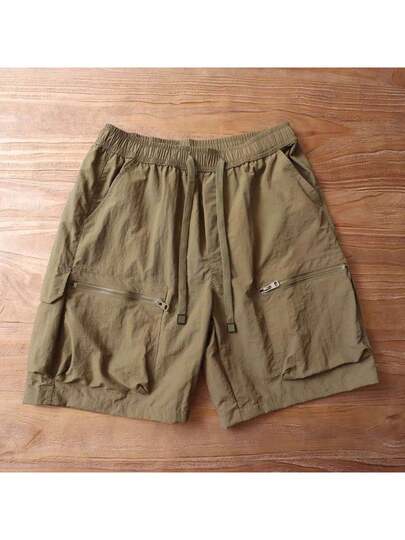 Men's Cargo Shorts With Multiple Pockets, Zipper And Quick-Drying Pants, Thin And Wear-Resistant