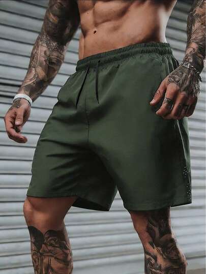 男士休闲透气健身短裤 - 軍綠色 - 查看 1
