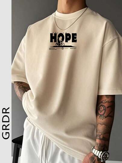 男士休闲治愈系态度标语印花圆领短袖T恤,夏季