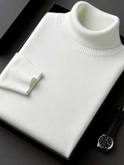 男士休闲高领毛衣,通勤和叠穿皆宜,秋冬季长袖上衣 - 白色 - 查看 1