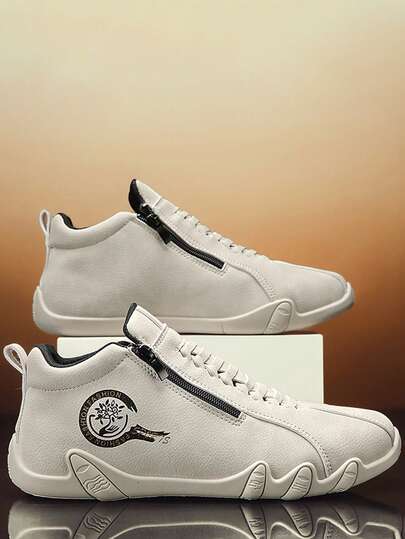 男士休闲鞋侧拉链靴,2000 年代秋冬风格情人节创意 - 米色 - 查看 1