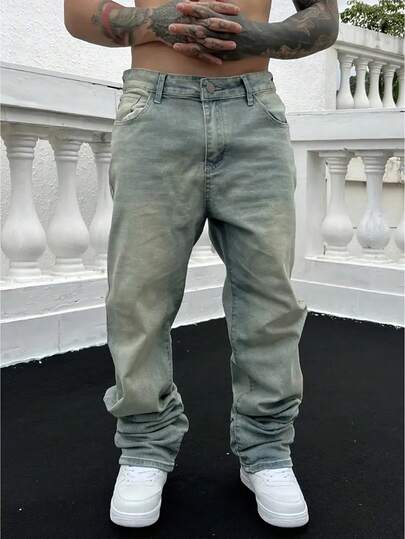 男士休闲修身弹力浅蓝色牛仔裤 - 淺色水洗藍 - 查看 1