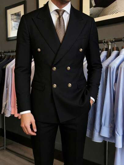 男士通勤绅士商务双排扣翻领大衣 - 黑色 - 查看 1