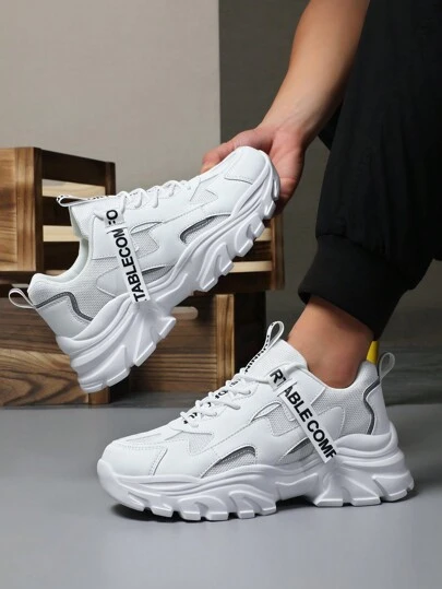 男士時尚舒適透氣休閒運動鞋,厚底、圓頭、綁帶、低幫 - 白色 - 查看 1