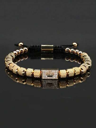 男士时尚皇冠吊坠手链,不锈钢可调节串珠链,合成方晶锆石,感恩节/圣诞节/父亲节珠宝礼品配饰 - 彩色 - 查看 1