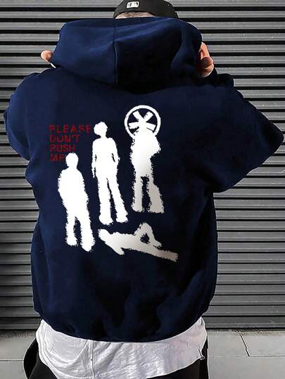 男士肖像和口号印花连帽衫 - 藏蓝色 - 查看 1