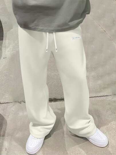 男士针织直筒裤,字母印花,休闲高街风格,宽松版型,适合春秋夏 - 杏色 - 查看 1