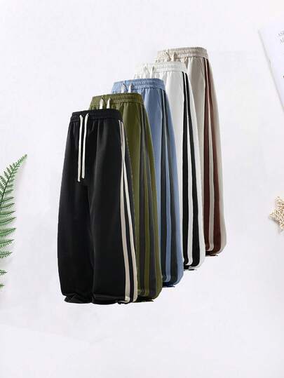 男士宽松华夫格阔腿裤时尚运动休闲夜走健身锻炼垂坠运动长裤 - 黑與白 - 查看 6