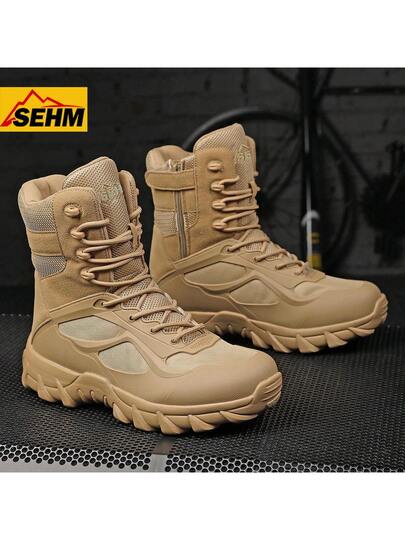 男士户外登山靴,舒适高帮鞋,时尚青年露营沙漠靴 - 沙色 - 查看 1