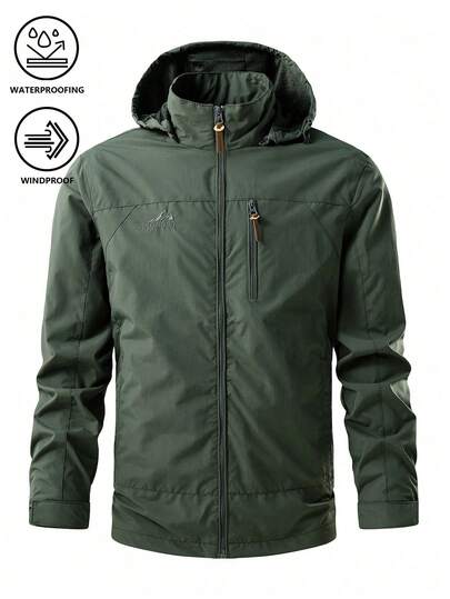 男士户外防风夹克,防风防水,适合户外徒步和休闲活动,春秋季穿着 - 軍綠色 - 查看 1