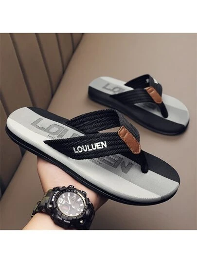男士凉鞋夏季露趾户外沙滩鞋休闲拖鞋防滑软底人字拖男 - 黑色 - 查看 1