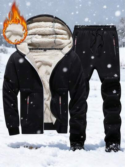 男士羊毛连帽夹克和运动裤套装,保暖隔热夹克搭配抽绳运动裤,是秋冬季节的理想之选。
