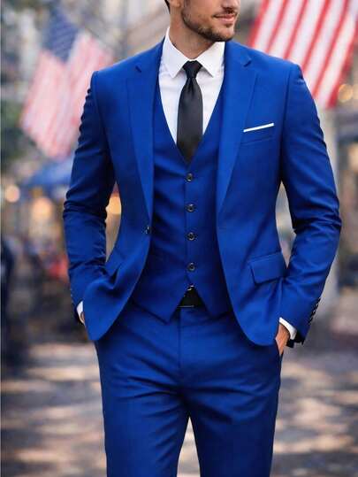 Men's Slim-Fit Three-Piece Suit With Notch Lapels