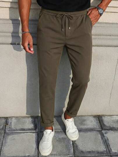 男士纯色高腰抽绳休闲裤,裤脚收口