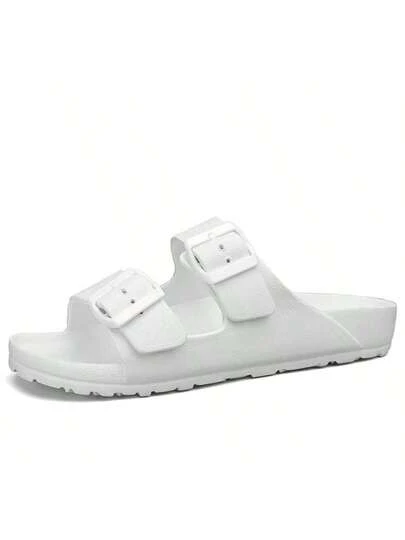男士春夏塑料防水防滑纯黑色圆头平底拖鞋 - 白色 - 查看 1