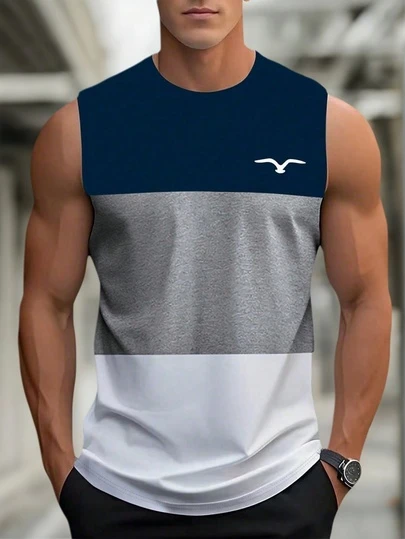 男式夏季印花圆领休闲无袖背心 - 藏蓝色 - 查看 1