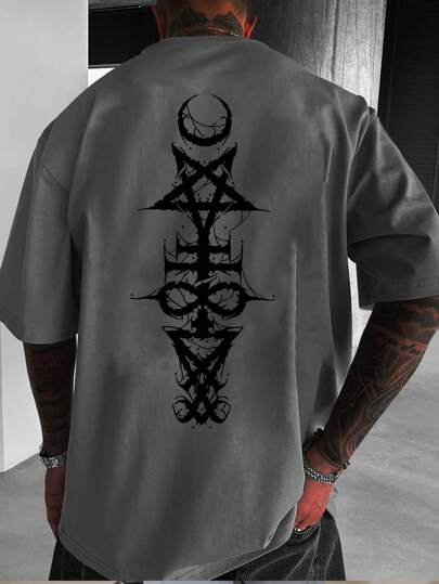 男士夏季圆领短袖休闲 T 恤,带星星图案 - 灰色 - 查看 4
