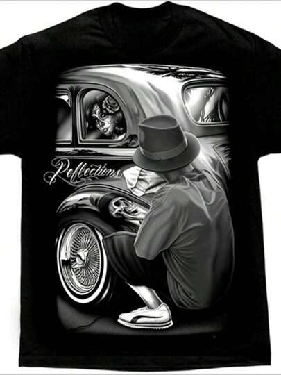 Men's T-Shirt With Digital Print Of 220 G From DGA Art "Reflections Lowrider Skull"