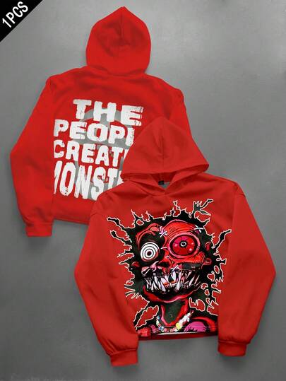PAVTROS 男士白色万圣节绿色怪物印花连帽衫 - 彩色 - 查看 1