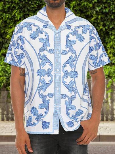 Men's Woven Fashionable Casual Paisley Printed Loose Short Sleeve Shirt For Daily Use