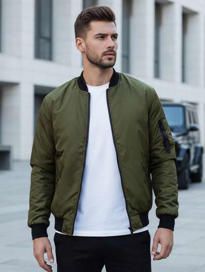 這款男士飛行員夾克採用短版剪裁和經典的飛行員夾克版型。它配備全長拉鍊,方便穿脫。夾克設有兩個外部口袋,可存放小物件,還有一個帶拉鍊的袖袋。袖口和下擺均採用彈性收口設計,這是飛行員夾克的標誌性元素。短款剪裁確保了夾克保持了飛行員風格服裝的經典輪廓。 100% 聚酯纖維布料經久耐用,不易磨損。這款飛行員夾克設計簡潔,是日常穿著的必備單品,可搭配各種褲裝和襯衫。