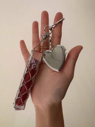 金属便携式口红/润唇膏架,带迷你镜子,时尚悬挂装饰收纳架,紧凑型化妆品收纳配件 - 彩色 - 查看 1