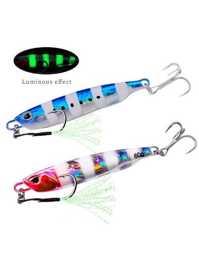 金属勺形诱饵,用于远距离投掷的下沉诱饵,配有夜光铅鱼皮和三重钩,适用于咸水和淡水捕鱼,渔具和配件 - 彩色 - 查看 1