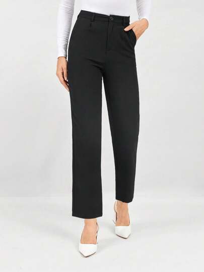 Miaspire 春季黑色斜口袋七分西装裤 - 黑色 - 查看 1