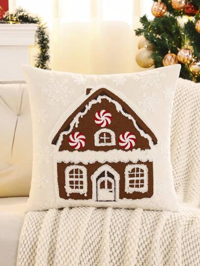 Miater 1件/2件装圣诞装饰枕套,刺绣绒面面料,冬日小屋图案,客厅沙发卧室节日礼物,米色 - 米色 - 查看 11